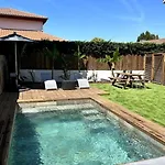 La villa Logement avec piscine privée chauffée Biarriz, situada a 3 km de Golf Ilbarritz, cuenta con una terraza con vistas a la piscina.